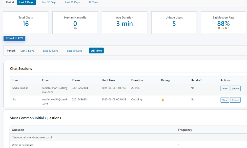 AI Live Chat PRO stores chat data directly on the website’s own hosting environment. This ensures that customer messages and transcripts remain within the business’s control. For companies concerned with GDPR, HIPAA considerations, internal compliance, public sector data handling policies, or contractual privacy obligations with clients, this architecture can be a significant advantage. Local data retention also reduces reliance on external service availability, which is relevant when evaluating the operational continuity of communication systems.