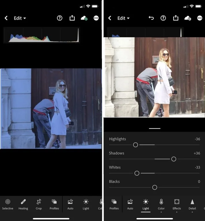 Pro Tip: Images can be synced in Lightroom on your mobile device and desktop versions. This will allow for presets to be saved on both devices. The desktop version is however not free and will cost around $9 per month.
